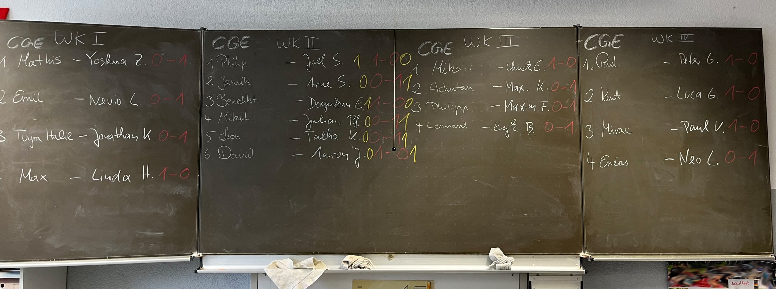 Ende Januar fand an unserer Schule eine denkwürdige Kreismeisterschaft im Schulschach gegen das Cusanus-Gymnasium Erkelenz statt. Zum ersten Mal gab es in allen Wettkampfklassen eine Ausscheidung.